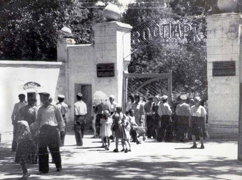 На фото из пятидесятых годов прошлого века — вход. Тогда зоопарк находился в центре города. Всем был хорош, но места маловато.