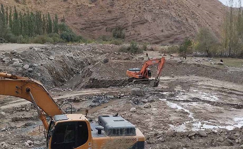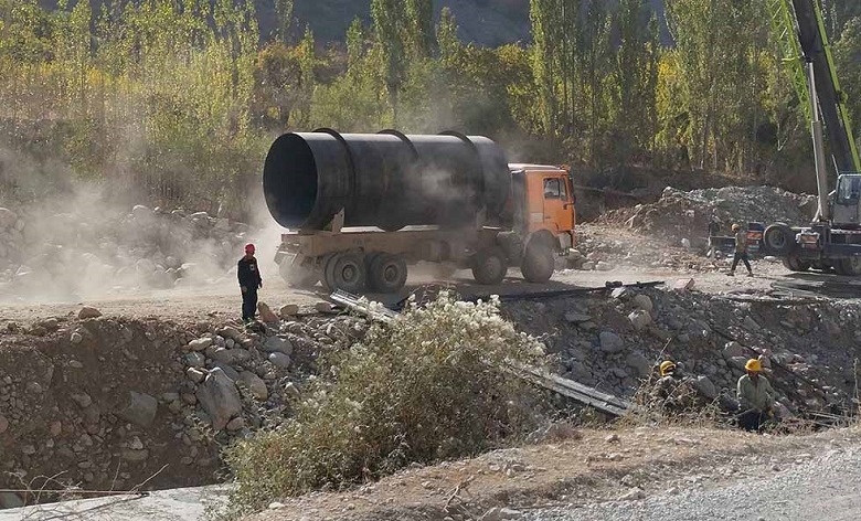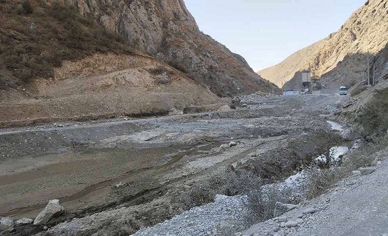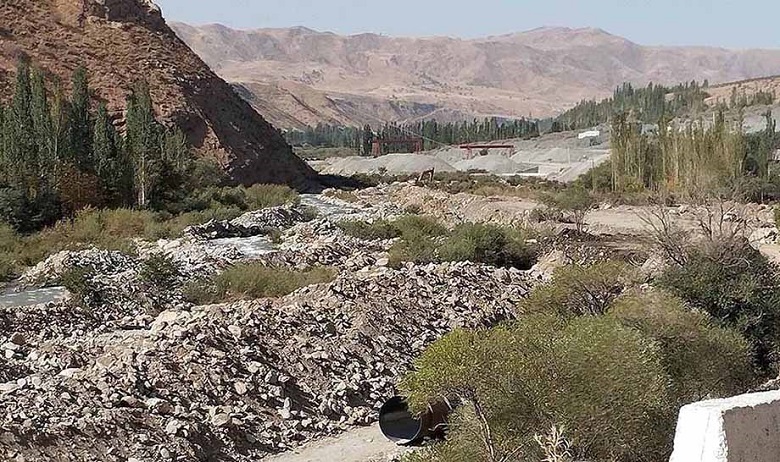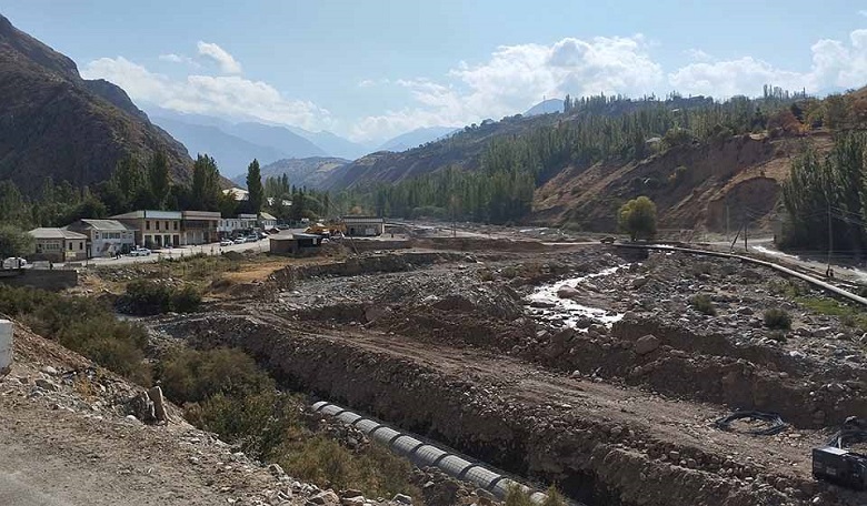 Труба в транше у дороги предназначена для выработки электроэнергии. На Аксу строится каскад ГЭС и все они будут в трубах. Если к сооружению Тамшушской ГЭС строители только приступили, то прокладка Рабатской и Чаппасуйской гидростанций велась в 2023 году. Уже тогда было истерзано русло. Какое оно нынче выше Гиссарака, увидим.