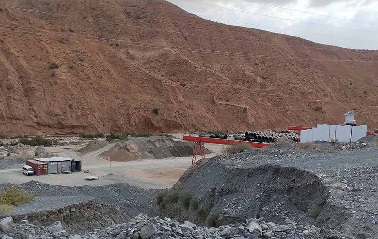 Так выглядит тамшушская стройплощадка, если смотреть вниз от посёлка Гиссарак. Свободно текущая река будет помещена в трубу.